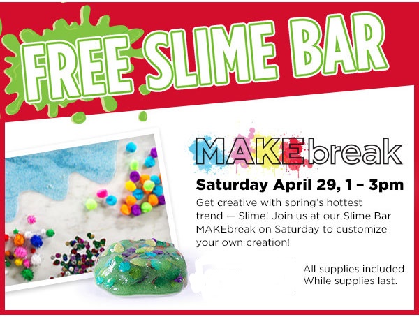 SLIME BAR TOMORROW, APRIL 29, 2017-COME JOIN THE FUN...
